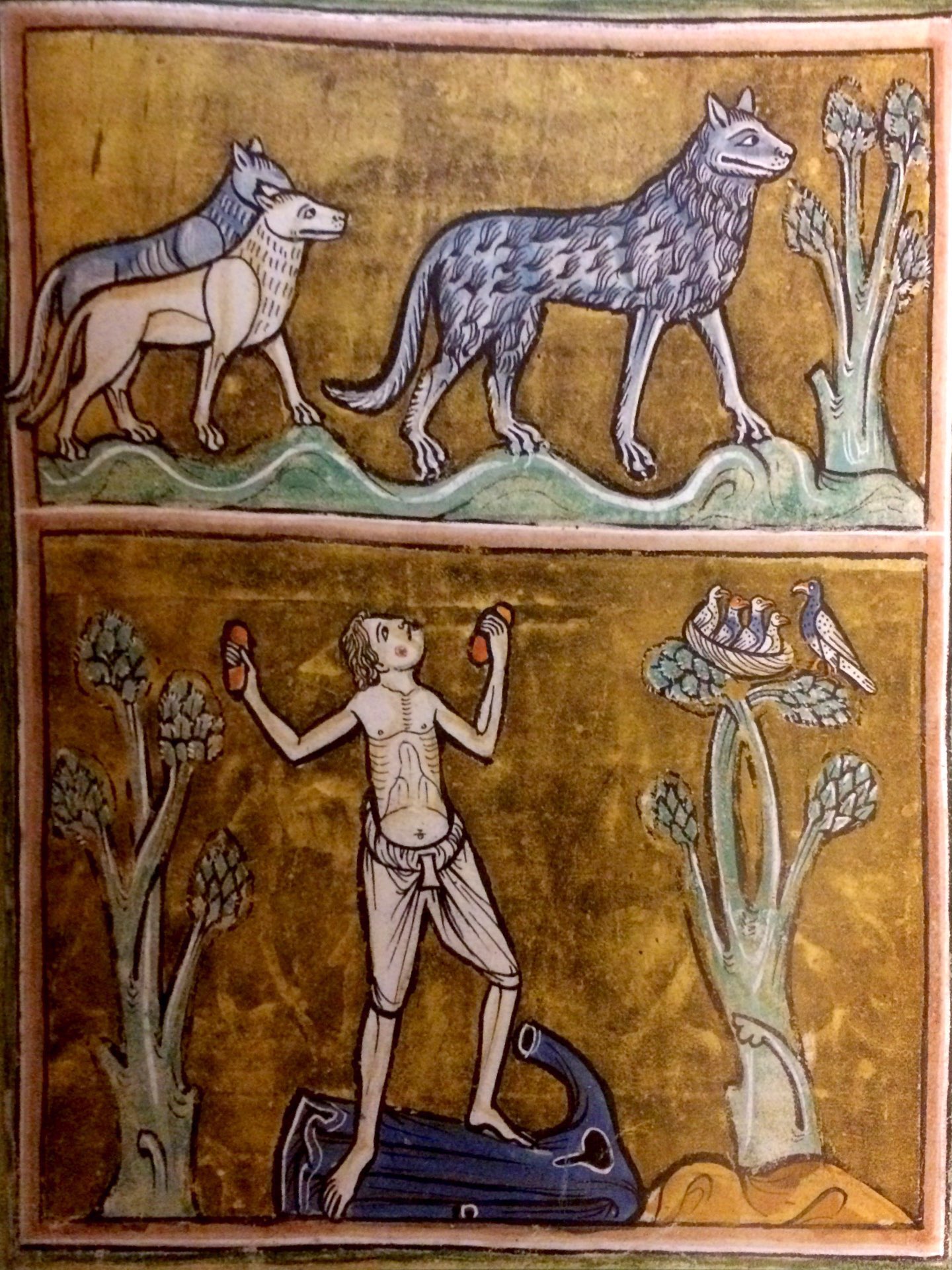 Tra gli animali con cui l’uomo del Medioevo doveva fronteggiarsi, la Frugoni ricorda in primis il lupo «incuteva terrore perché di solito non si trattava di affrontare un solo esemplare, ma un branco. Rapidi, intelligenti, feroci, i lupi erano temuti per l’insaziabile voracità, per la loro astuzia combattiva». Ma ecco che anche il lupo si trasforma divenendo mannaro: un uomo capace di trasformarsi in lupo, incarnazione del maligno, omicida e infanticida. Ma anche per combattere il lupo esisteva un sotterfugio: se si era così sfortunati da essere avvistati per primi, allora bisognava denudarsi e fare rumore con le pietre e gli oggetti che ci si ritrovava accanto (Immagine 7). La trasposizione dell’animale in maligno non è l’unica giustificazione di alcuni comportamenti soliti agli uomini medioevali; nel volume Vivere nel Medioevo. Donne, uomini e sopratutto bambini, la Frugoni ricorda come i neonati fossero soliti morire di soffocamento durante il sonno (mentre in realtà era la balia che, dormendo nello stesso letto, li schiacciava) o essere scambiati con un bambino – demonio (scusa perfetta per liberarsi di un figlio indesiderato).